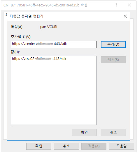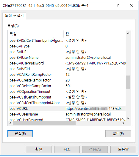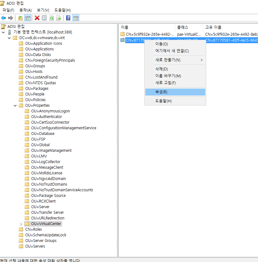 - OU=Properties, OU=VirtualCenter 에서 원하는 CN에서 속성변경
