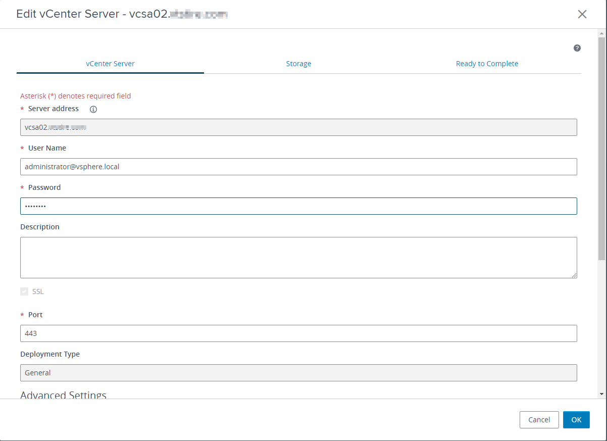 4. 해당 vCenter서버의 편집을 선택하여 ssl 지문 및 패스워드 확인