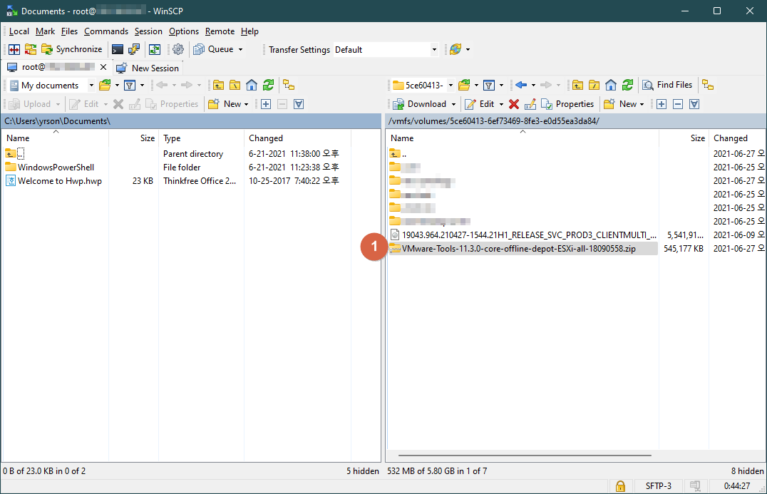 다운받은 Bundle 파일을 WinSCP와 같은 툴을 이용해서 ESXi 서버의 datastore에 업로드